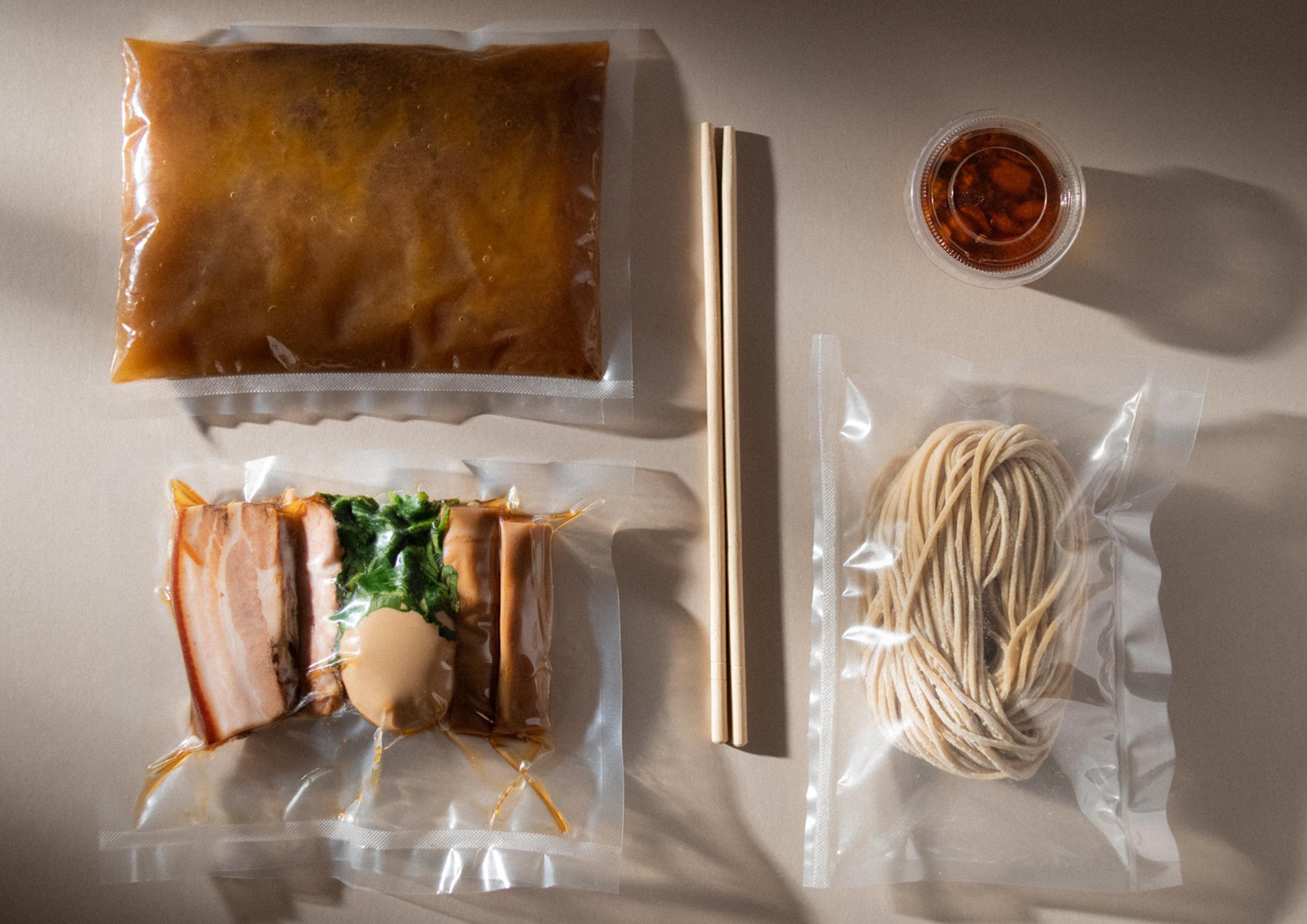 Gaijin Ramen Lab propose trois recettes de kit à composer soit-même : Tori - Ramen Poulet & Ail Noir / Rikukai - Ramen Terre & me / Kinoko - Ramen Végétarien. Trois recettes pour trois expériences authentiquement japonaises. Du sous-vide pour conserver toute la fraîcheur avec des produits biologiques, fermiers et locaux.