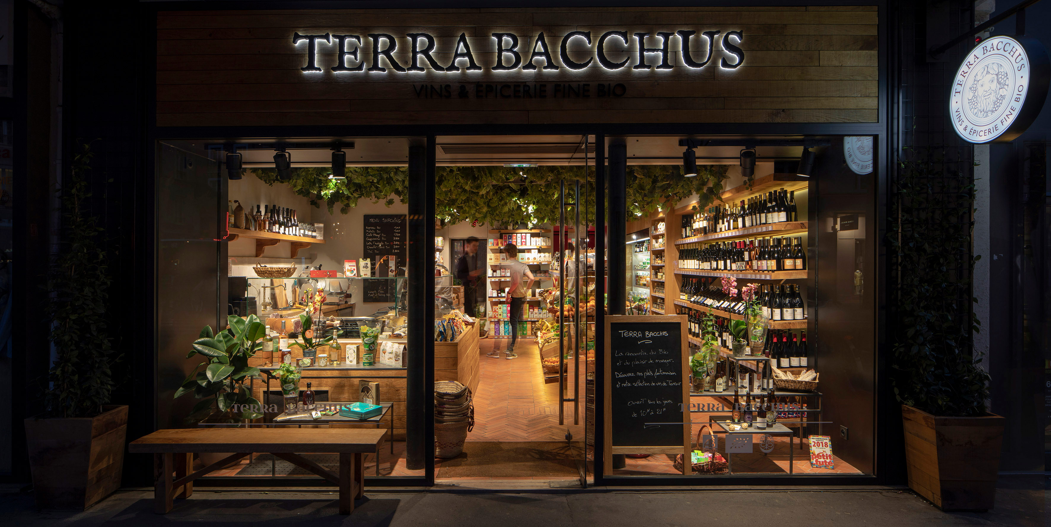 Terra Bacchus est un projet d’épicerie fine et de vins biologiques sur Paris. Il s’agit de la première boutique de la marque. Le lieu a été pensé dans sa globalité, de l’architecture intérieure à l’identité visuelle du magasin avec la création du logo déclinable sur divers supports de communication et l’habillage de la devanture.